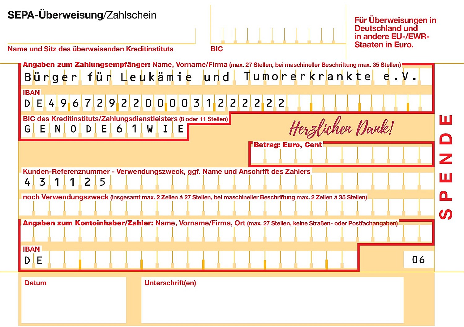 Bei allen Konten von blut.eV ist folgender Empfängername bei unserer Bank hinterlegt: